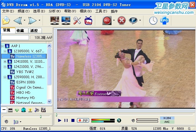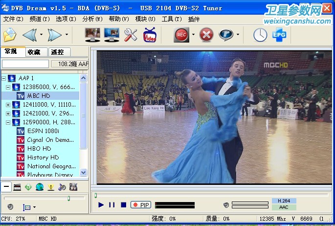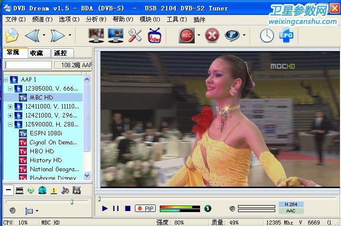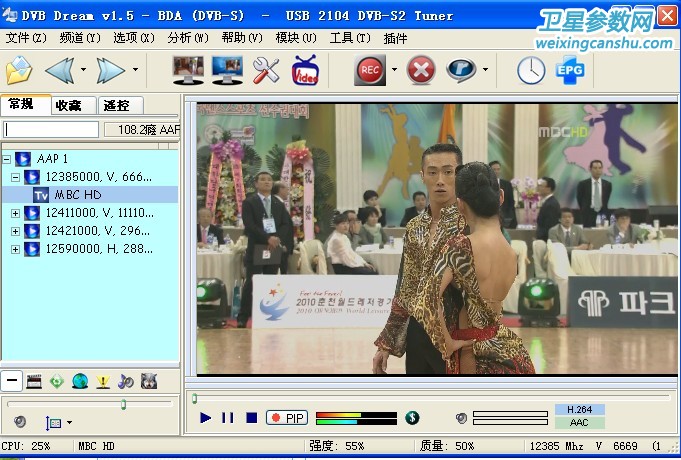 DVB XSL-007 S2用DVB DREAM软件接收108.2度12385V6667韩国MBC HD画面截图: