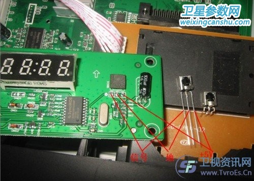 本来想在遥控器上换个大点的3极管看行不行,拆开一看不太好搞,哪3极管是个很小的片状元件,我买的第一台免费机型号为海克威2000的接收机也接收不灵,就把遥控器上的3极管换了个功率大点放大倍数高的管子效果也行,不过遥控器电流大了易烧红外发射管