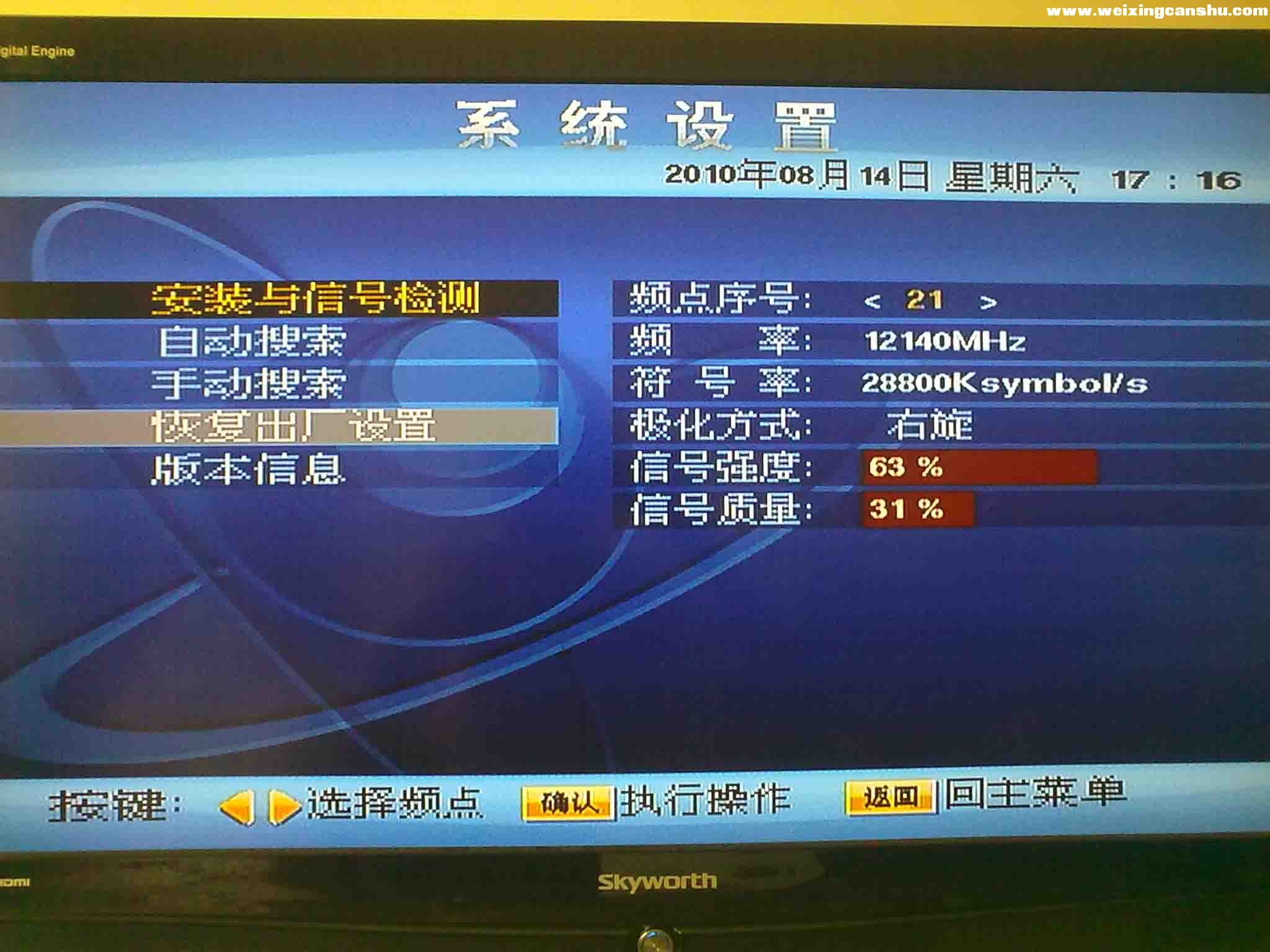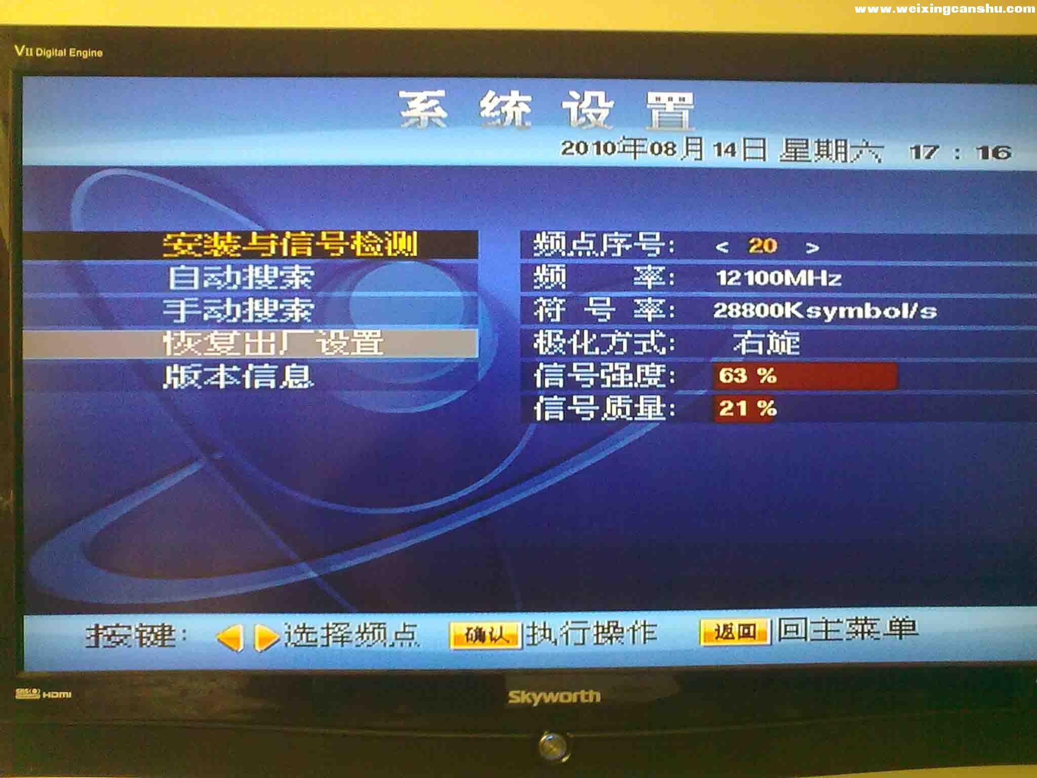 海尔hi2023ec+hi3102e单晶6芯套片,小蜜蜂1.60刷机,8月11号升级后只能收到16+4,高频头里有一个探针,改极化片90度搜索不到台,进超级搜索手动搜索22个频点,20频点和21频点(右旋)有百分之30的信号质量,但是还搜不到右旋的台。小锅直径可能是22厘米的吧。高手们帮帮忙吧,实在无计可施了。还有,原机是两兆的bin文件,小蜜蜂修改后是1兆的bin文件我的机子前边的额频点都是左旋的,后边的都是右旋的啊,总共22个频点啊。高频头的极化片转90度也收不到右旋的台。