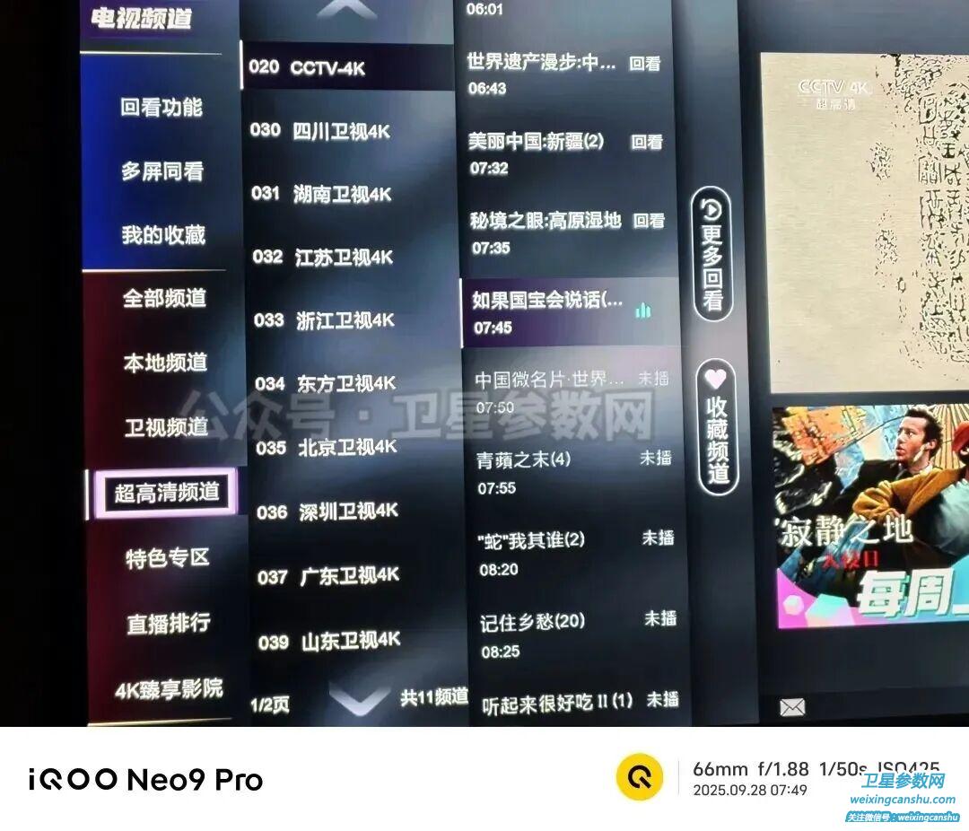 9月28日,江苏卫视、浙江卫视、湖南卫视、东方卫视、山东卫视以及四川卫视的超高清频道将正式开播。