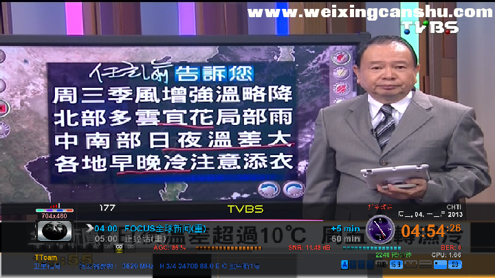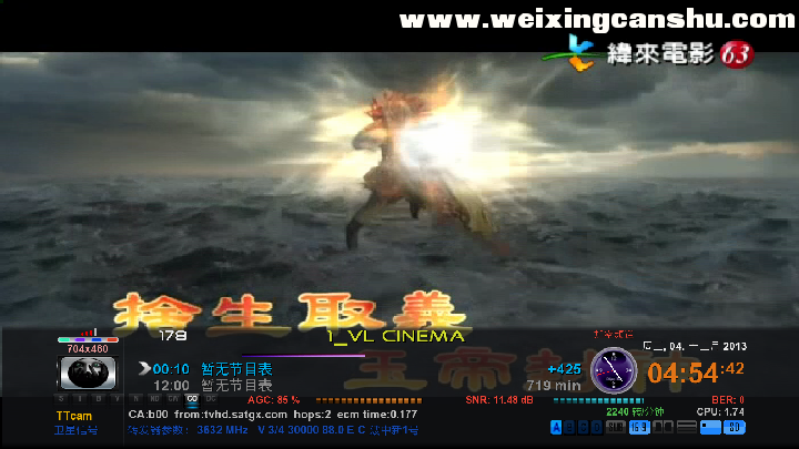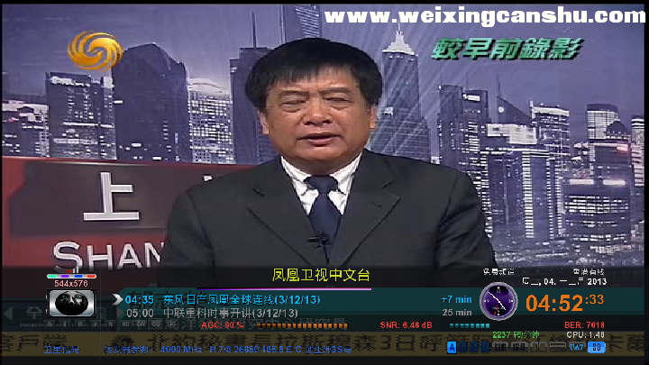 以前没有收3S,因为3S上有价值的台134上都有,近日得知凤凰资讯HD,凤凰中文HD凤凰香港HD在2014.1.1开播。今夜心血来潮把原来1.8米C锅主收115偏125.108和88C重新调整一下,因为108账号不给力全部黑屏已没有价值,把收108的头改收3S。因为锅面的馈源杆没有装成倒Y型(馈源杆装成倒Y型有利偏收)反复调整凤凰一组在门限边缘,TVB8一组肯定不见踪影,但愿即将开播凤凰HD信号不会低于标清。