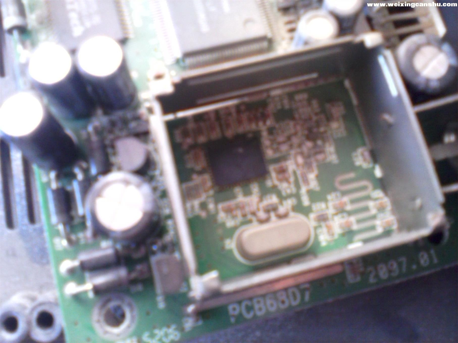 随手往旁边一扔,由于没有拔线竟然出现了瞬间图像,看来是由于长期24小时开机发热脱焊引起的了随即按压各集成电路,当按压到下图位置,图像出现了,