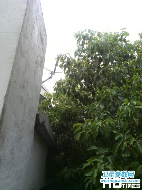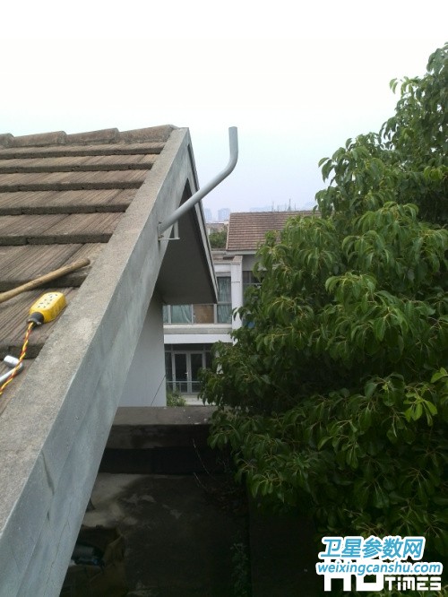 原来阳台是朝西南的,正南方向全是高大的树木,仰角不行,怎么办,天无绝人之路上,看到朝东的一个屋檐角,那个地方可以打膨胀螺丝,所在的位置装好锅子,应该高于那个树木,二话不说.下手干!