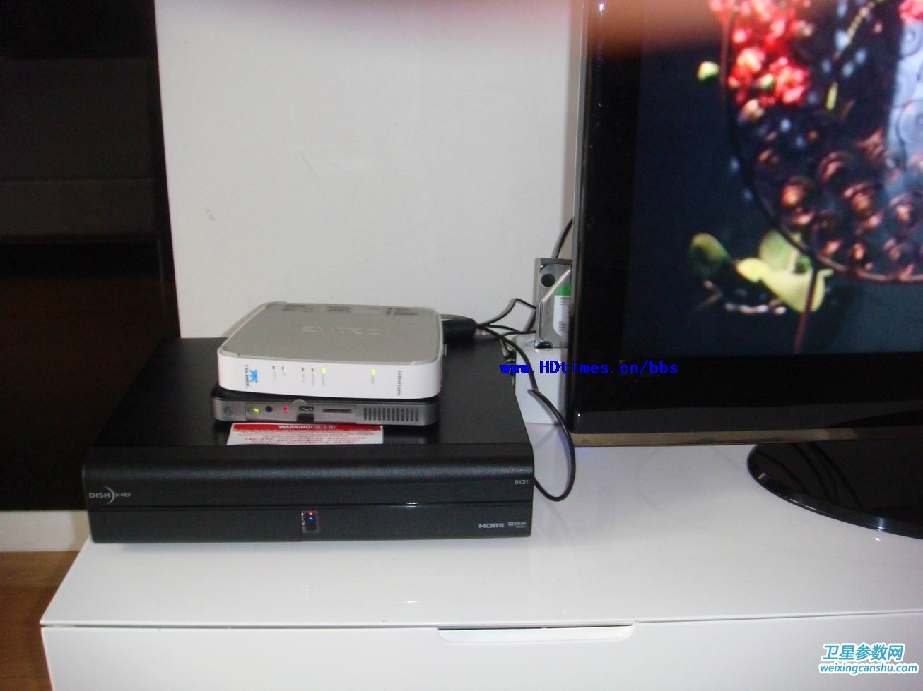 dish个头真太大了,上面的htpc和路由器都快看不见了