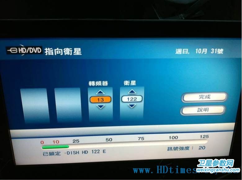 用寻星仪先搜索到12274V6000这一组 然后接到专用机后直接就出画面了 FOOD HD 那一刻很鸡动啊...