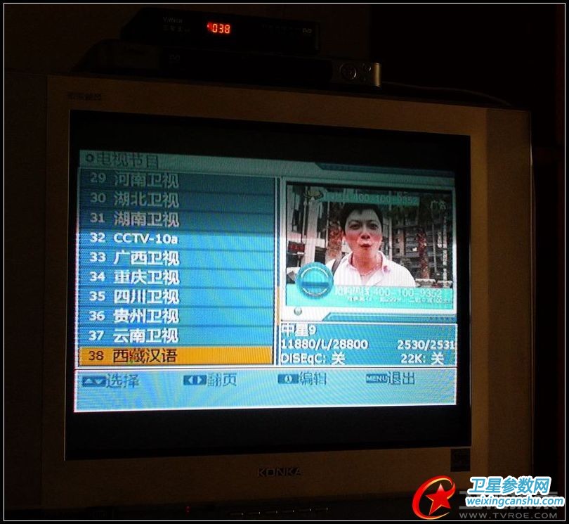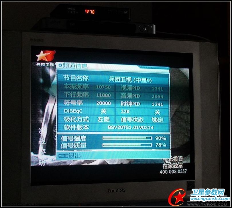 拿着遥控器研究了一番,有菜单键,按下去了,在频道信息里还有信号强度显示,再次调节锅的方向和仰角使信号强度达到最大.