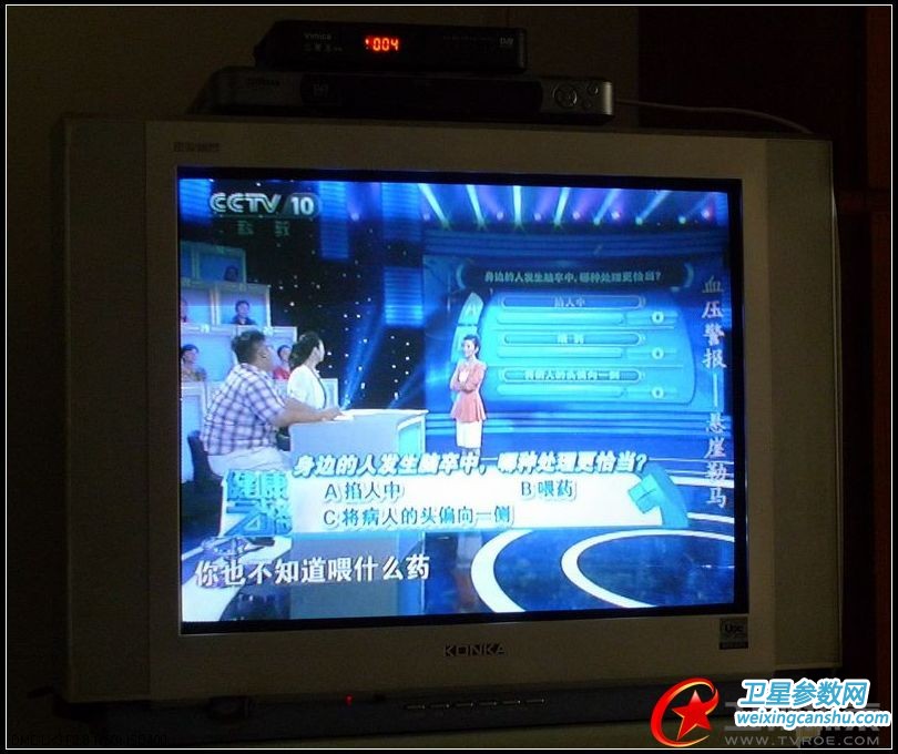 拿着遥控器一个一个的切换电视节目,没有看到中央一套(显示无信号)总共有30几套节目,不是46套节目,哪里有问题呢?突然想到锅还有个仰角,立即在无信号的中央一套上调节锅的仰角,出来了!出来了!中央一套也好看了,一数一个不差正好46套节目.