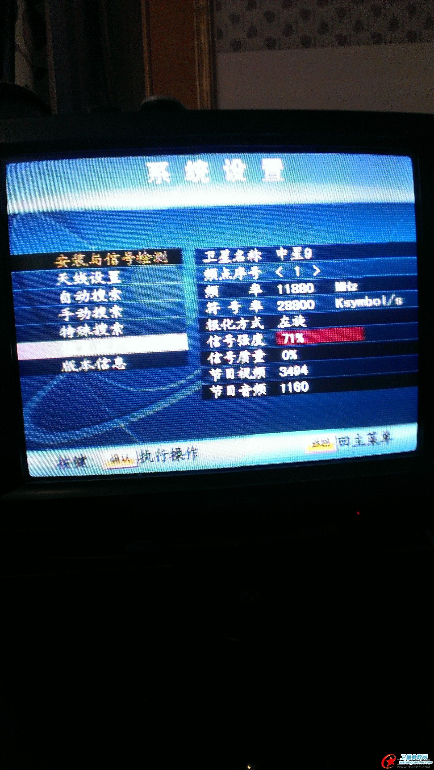 TB上110买的双模机 线接好后 信号强度不错 但就是不论怎么移动锅的方向 信号质量一直是0