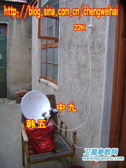 因为前不久成功接收了中ju+新天11号,现根据上次经验,接收中ju+韩五也成功了!在原新天的基础上,高频头顺时针拧动了一点点,仰角抬起一点点,位置也由原位置向东转动了一点!等信号P值最大时,固定住。再调中ju,这次的中ju头要比收新天时的夹角大一些,中ju信号稳定之后(信号质量不如和新天一起收看时好但不影响正常看中ju),固定中ju头!