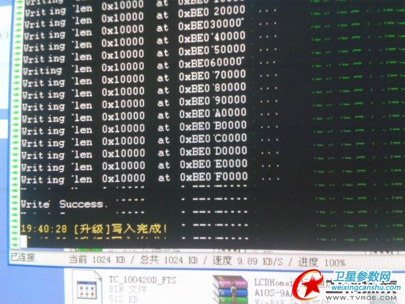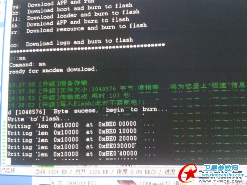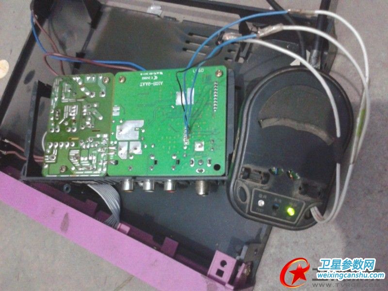 刚刷成功一台必佳中ju机,还是第一次见到这种没有升级接口,主板没有升级针的怪胎。 只好在背面的四个焊点处焊上三根线(用万用表测量,对地阻值为0的是地线,两个阻值相同的是升级线,阻值比较小的是VCC) 将焊上的三根线与升级小板相连 顺便曝光一下我的升级小板 自己做的小板,三极管用的是S9014,来自废旧电话机,效果是没有不能连接的机型。5V电压取自USB。连接完毕后先备份再升级 昨天晚上刷了好几次都不完美,今晚成功,顺便上传工具和程序,在此感谢互联网,感谢各坛无私奉献的烧友们。 中天联科稳定的刷机软件.zip 最新六套字典A10S-9AAT A10S-9CAT 1118+AV2020+1J+10X改自动搜索台标对应带特殊搜索ok.rar