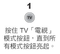 1,先按下顶端TV键模式,直到所有模式灯亮起时,松手。
