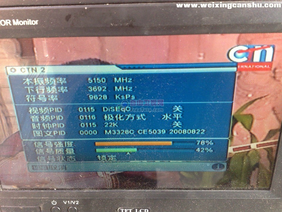 C频段信号用138.0°E 亚太5号3692 H 9628 CTN 一组来测试