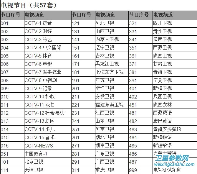 中9三代机户户通节目表如下: